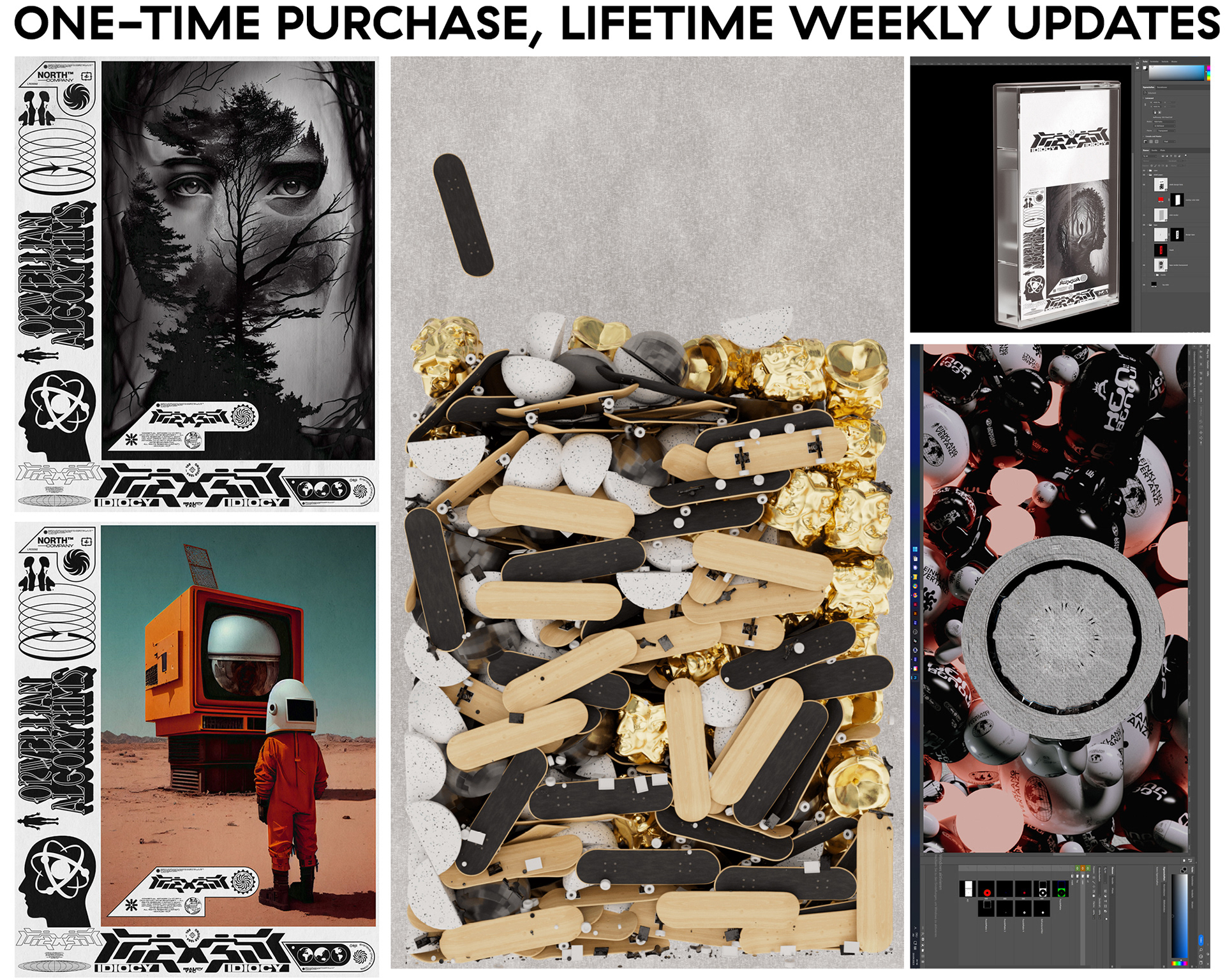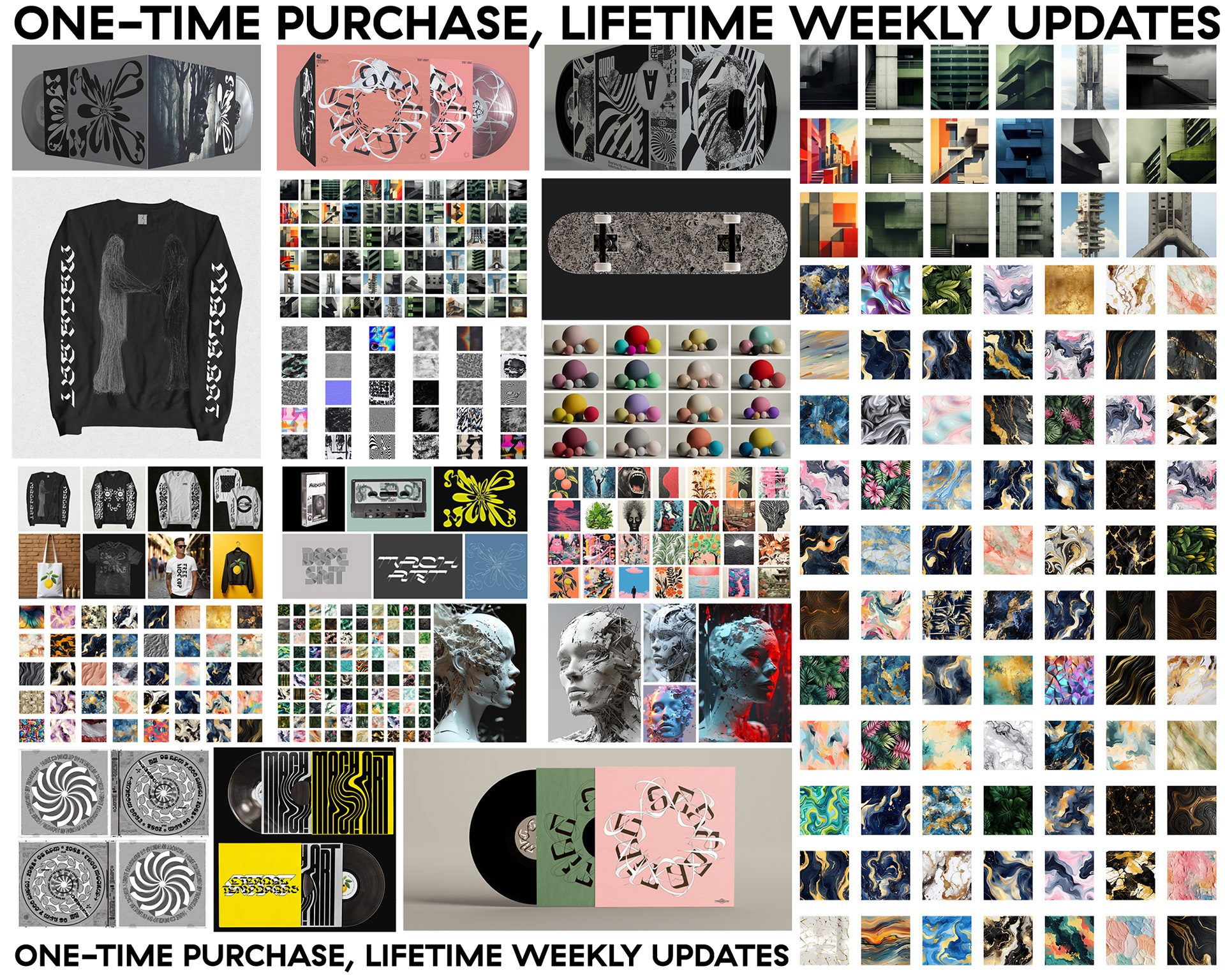 Designer Enthusiast Package / 300+ Mockups, 1350+ Textures & Pictures, 450+ Vectors, Project Files, Seamless Patterns, PSDs, 3D, Free Fonts, C4D Materials / Free Weekly Updates
